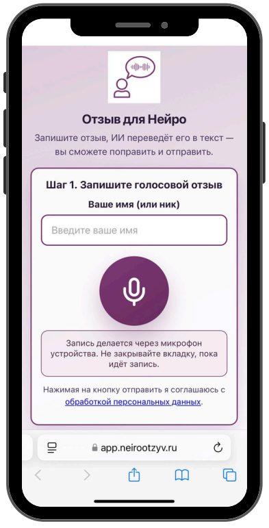 Веб-сервис, который превращает голос вашего клиента в структурированный отзыв за 3 минуты с помощью ИИ. Без приложений. Для всех, кто нуждается в отзывах.